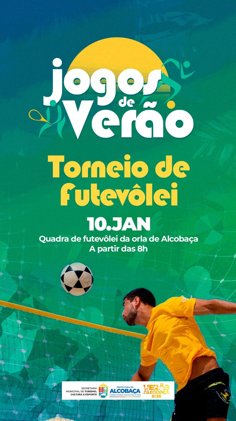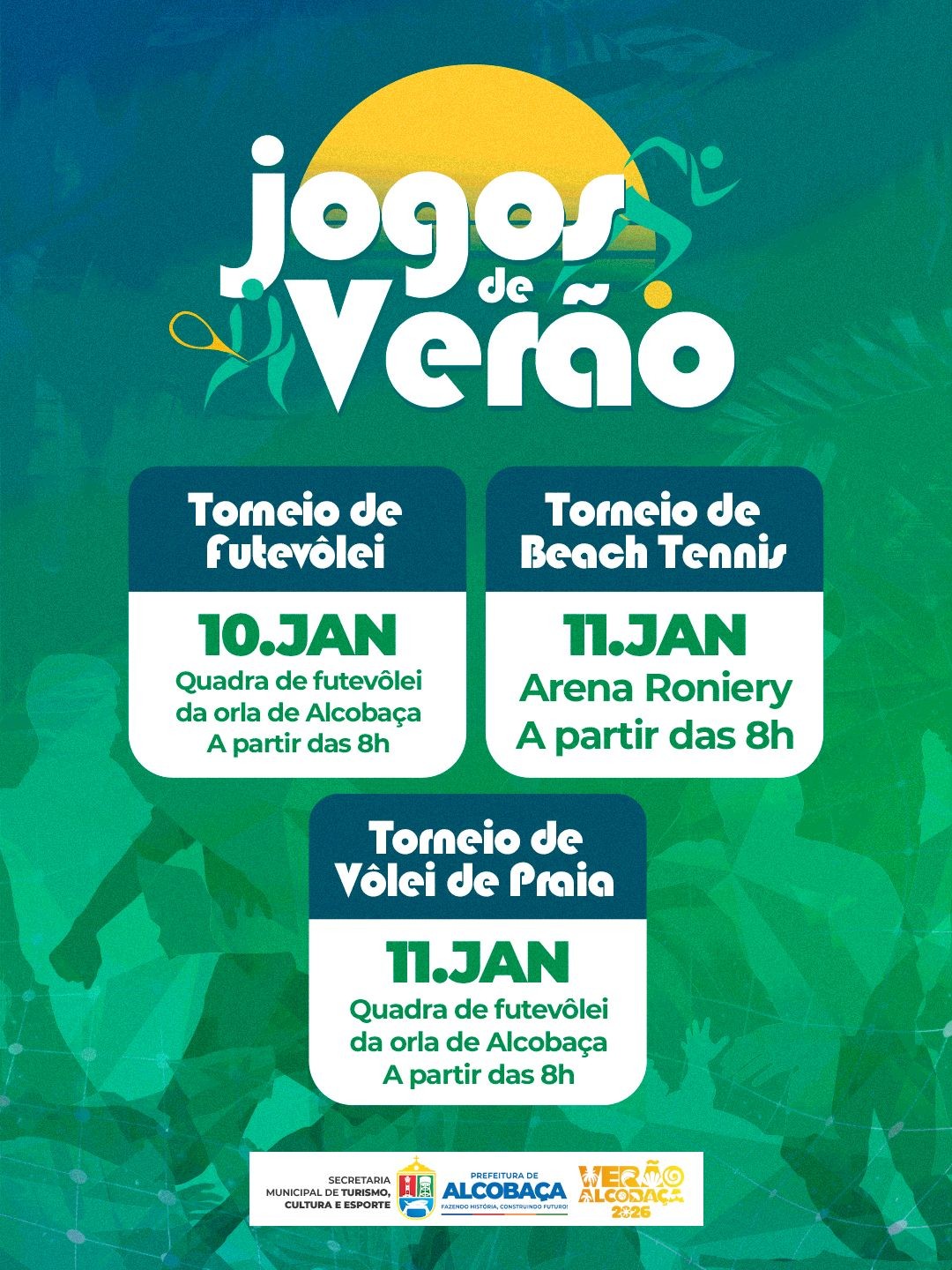Os Jogos de Verão integram a programação do Verão Alcobaça 2026 e são promovidos pela Prefeitura de Alcobaça, por meio da Secretaria Municipal de Turismo, Cultura e Esporte, com o objetivo de incentivar a prática esportiva, promover lazer para moradores e visitantes e valorizar a orla como espaço de convivência e bem-estar durante a alta temporada.