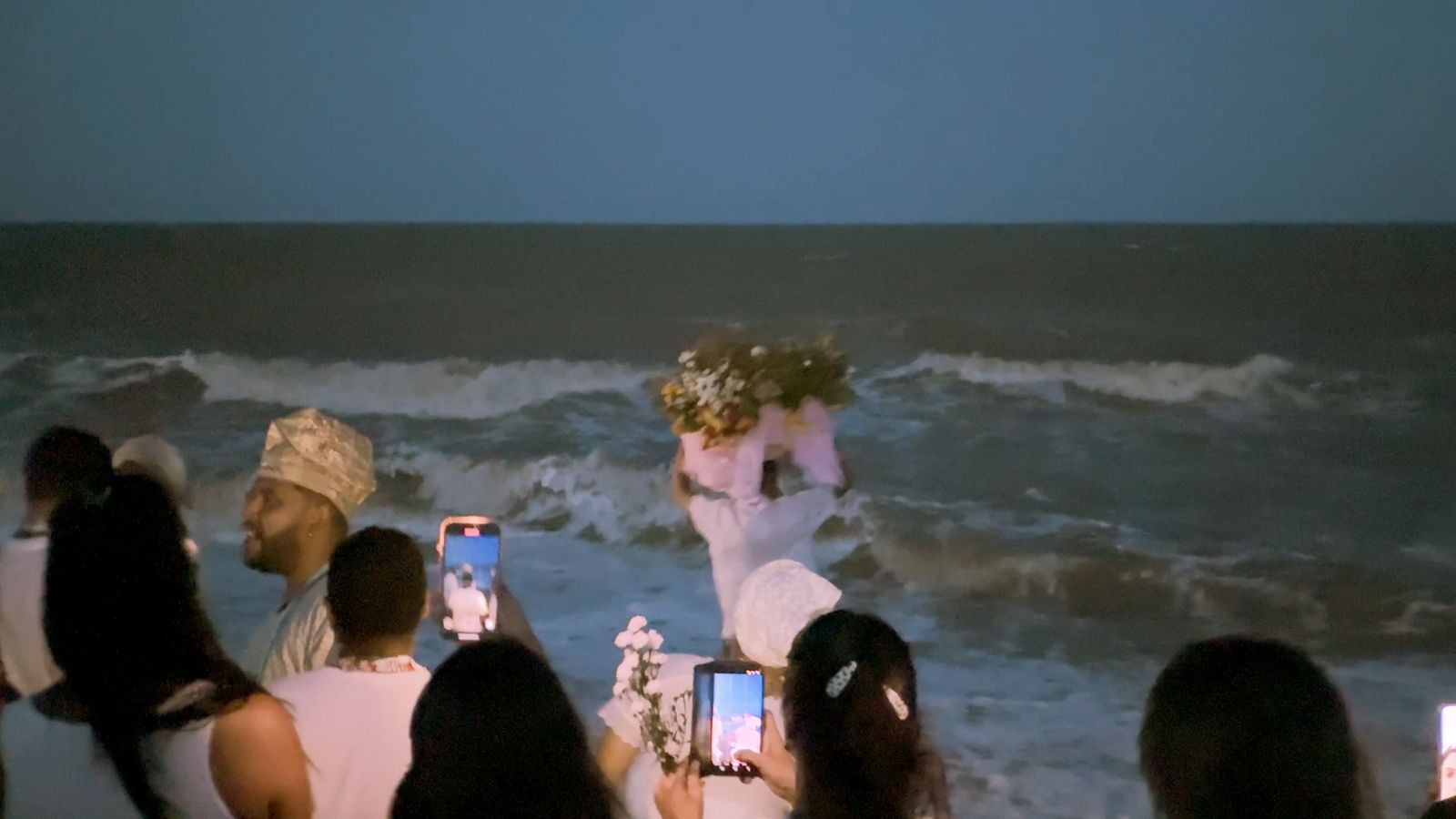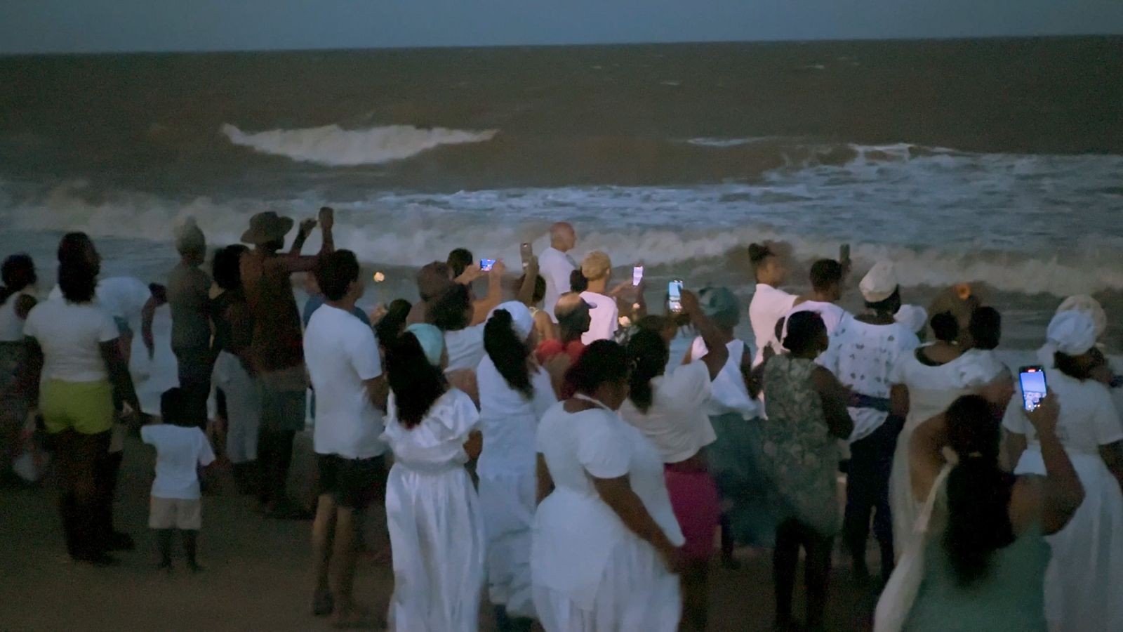 Praia do Farol reúne fiéis e visitantes em celebração a Iemanjá em Alcobaça