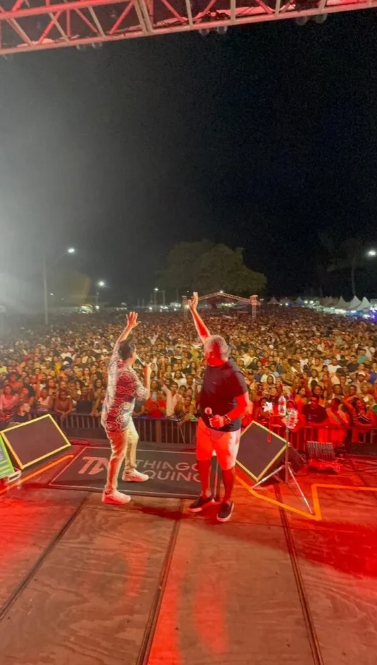 A noite teve como um dos pontos altos o show de Thiago Aquino, que levou milhares de foliões ao delírio com um repertório repleto de sucessos. Do romantismo à sofrência, o artista transformou a avenida em um grande coral a céu aberto, mantendo o público conectado do início ao fim da apresentação.