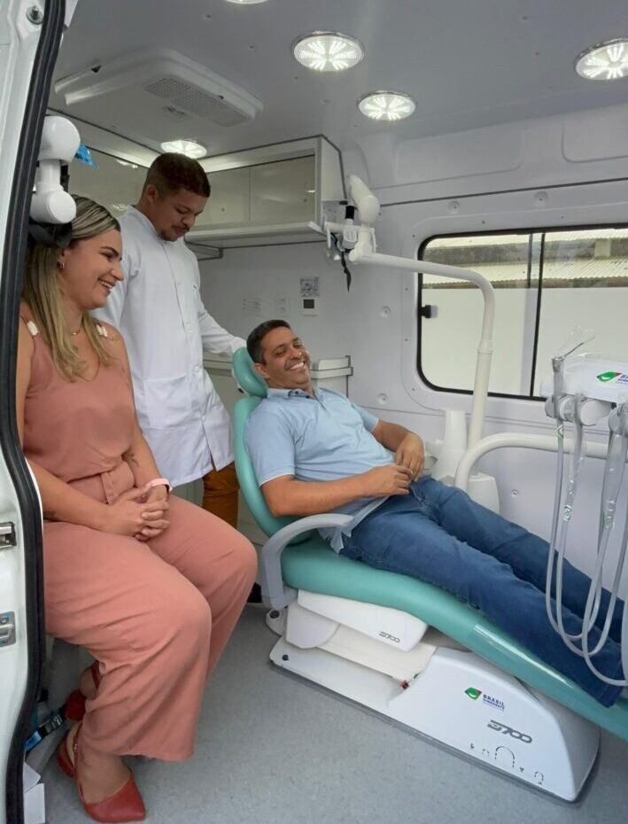 O veículo, totalmente adaptado e equipado com consultório odontológico, permitirá que a equipe de saúde bucal alcance comunidades mais distantes da sede, beneficiando moradores de áreas rurais e de difícil acesso.